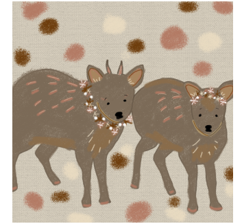 ソーシャルディスタンスが当たり前になって、コロナで色々なことが変わって、大変なことも多い今だからこそ、「グンディたちの仲睦まじい姿で癒やされてほしい。」そんな思いで描きました。このイラストが少しでも、埼玉こども動物自然公園の動物たちの、動物園に関わる方々の力となれますように。