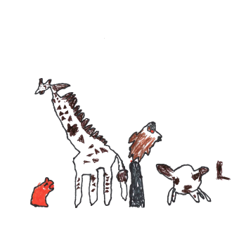 どうぶつえんで、いろんなどうぶつにエサをあげたり、のせてもらったりするのがだいすきです!どうぶつたちにおいしいごはんをとどけたいなとおもって、えをかきました♡